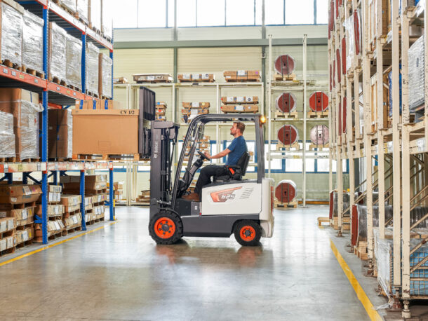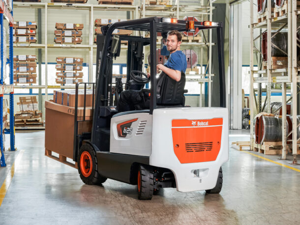 Czterokołowe wózki widłowe elektryczne z przeciwwagą Bobcat zapewniają dużą moc, doskonałą wydajność, zwiększone bezpieczeństwo, komfort jazdy, wyjątkową łatwość obsługi i niezawodność.